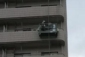高所作業でタイルの修理